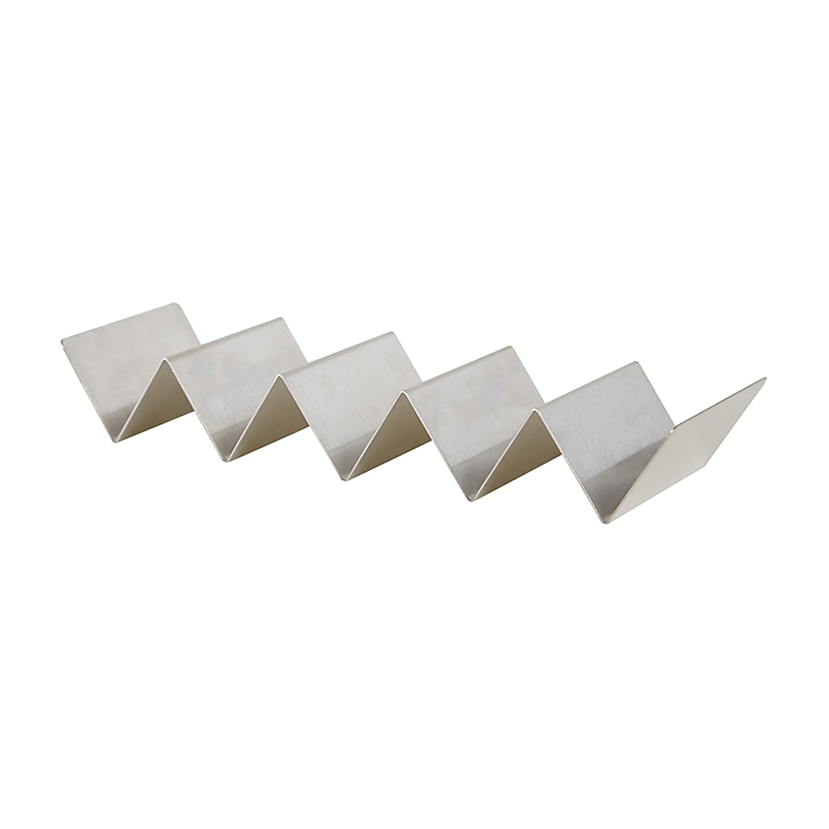 Serve tacos with style in this stainless steel taco holder from Winco®! It can accommodate 4 or 5 tacos and it's also perfect for dressing hot dogs.