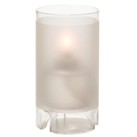 This 5‐1/2" H X 3" D glass tealight lamp with a satin crystal finish provides your tabletop with a clean design and is made of durable, laboratory‐grade glass. You can use it with Hollowick's HD36 disposable fuel cell, which burns for 36 hours and doesn't leave any waxy mess like a candle would.