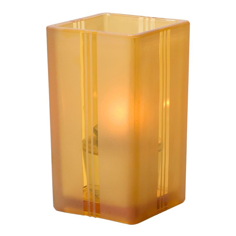 This Quad Votive lamp from Hollowick will add a sleek look to any tabletop This art deco glass votive lamp features a beautiful amber color and is perfect for restaurants.