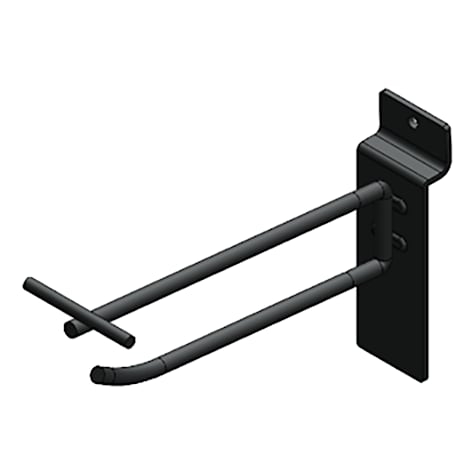 The T-Scan slatwall hook is a sturdy and versatile tool designed to securely hold and organize various items on slatwall panels. It provides a neat and efficient solution for your merchandise.