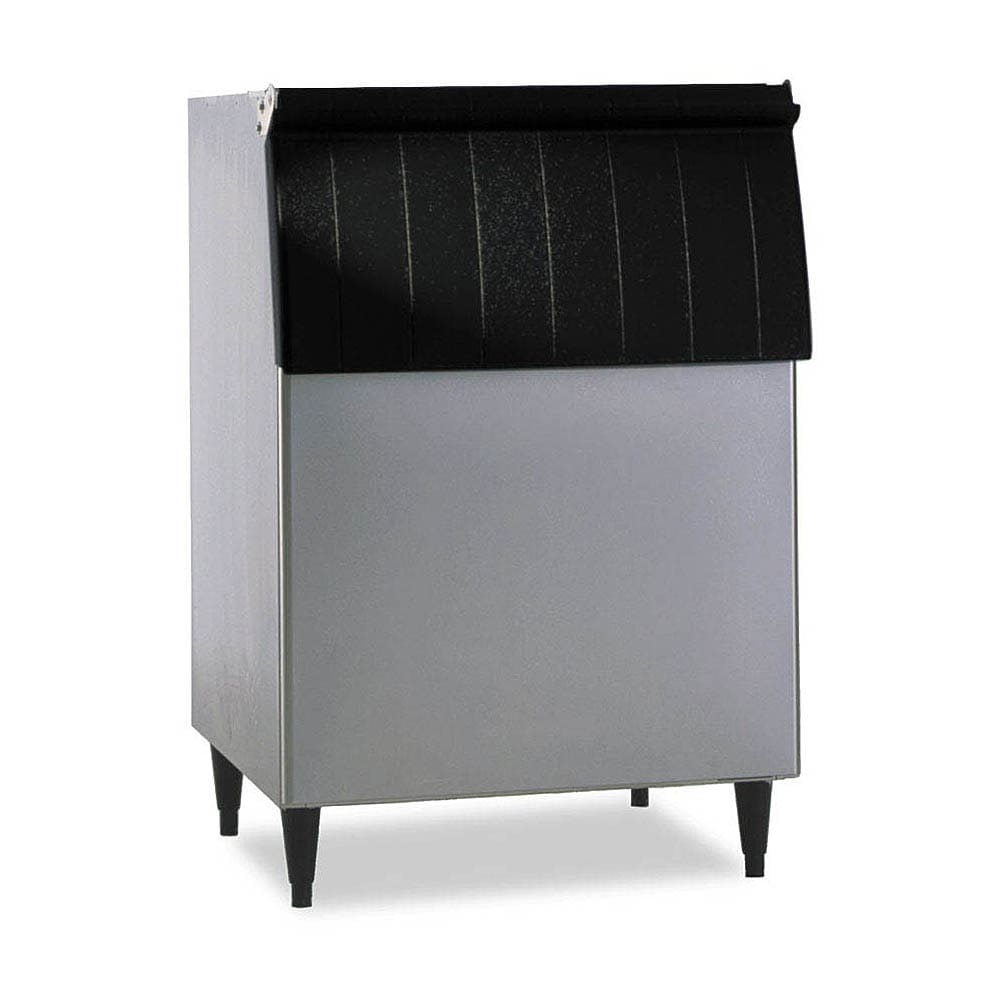 This ice storage bin from Hoshizaki is perfect for use in hotels or restaurants. It is 30" wide and can hold up to 360 lbs. of ice. It has a PVC coated galvanized steel finish and polyethylene bin liner for sanitary storage. It is protected by H-GUARD Plus Antimicrobial Agent. This bin is silver and black and will blend with any kitchen or dining decor.