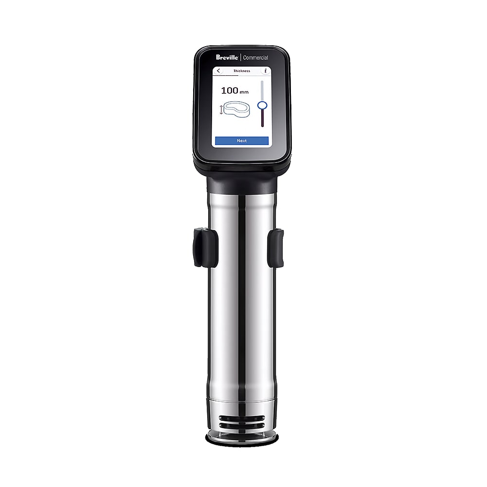 The HydroPro™ Immersion Circulator initiates a new generation of professional sous vide immersion circulators. Featuring Sous Vide Toolbox™, an intuitive on-board guided cooking experience that simplifies sous vide cooking by using scientific algorithms to calculate time to temperature and pasteurization for a vast range of foods. Programming and repeatability of your cooks is made simple thanks to"My Presets" and usability has been enhanced via a large touch screen that allows easy manual input of cooking parameters. The powerful heater and newly designed pumping system ensure precise temperature control across a wide range of cooking volumes. Designed with food safety and simple maintenance in mind, the design features a smooth waterproof construction, quick-release clamp, and a magnetic impeller for easy cleaning and descaling.