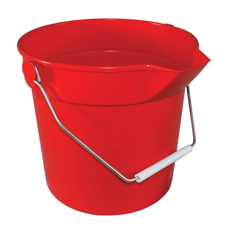 This Deluxe Bucket is great for tackling tough messes. It has a 10 Qt. capacity, and is constructed from high-density polypropylene. It includes molded pour spots, and embossed quart and liter graduations. This bucket also resists acids, alkalies, chemicals, and cleaning compounds for greater versatility. It comes in a red color.