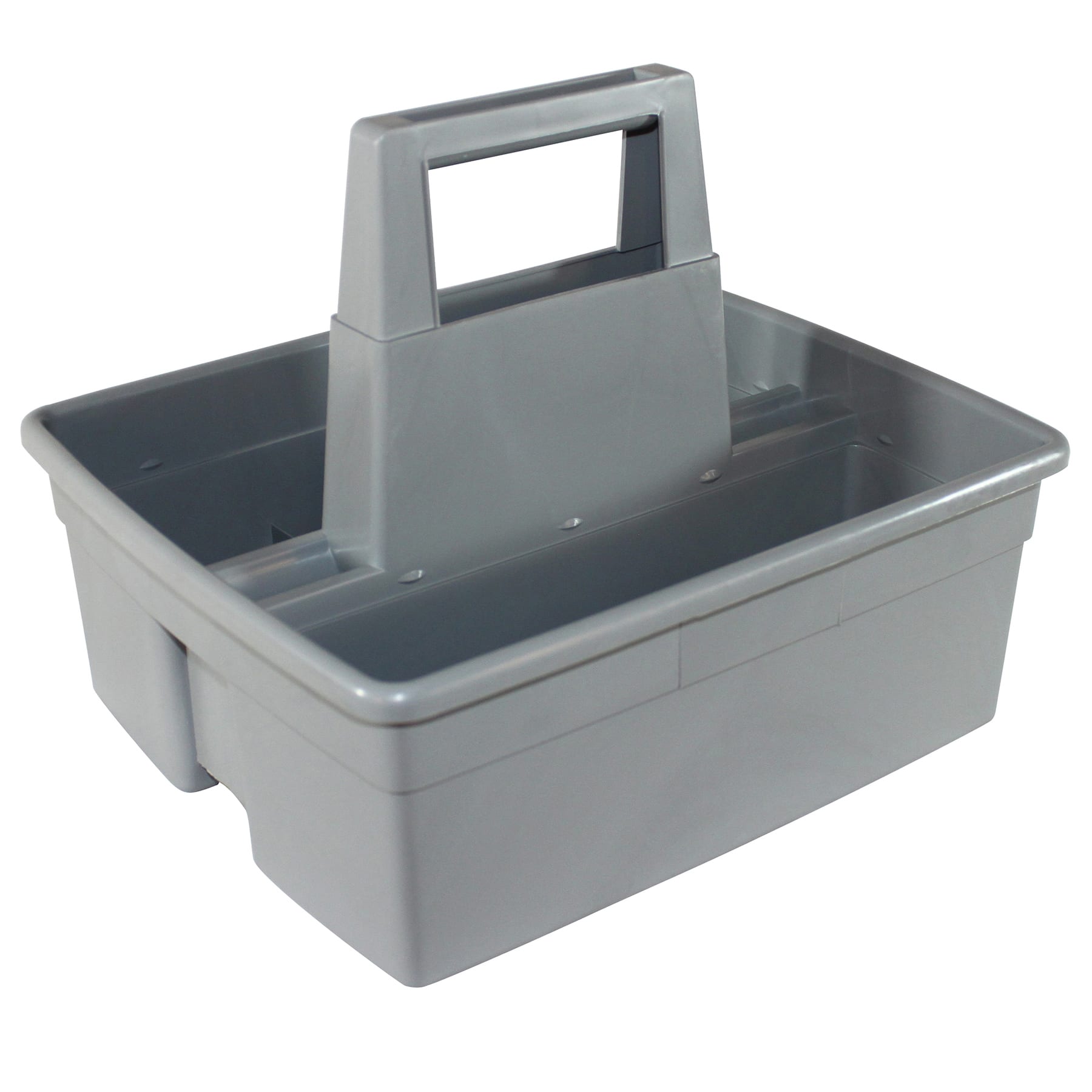 This Maids' Basket comes in a gray color and features heavy-duty construction with a high comfort handle. This basket includes high sides which prevent bottles from falling out and other spills. It comes in a 12.25"x11" size.