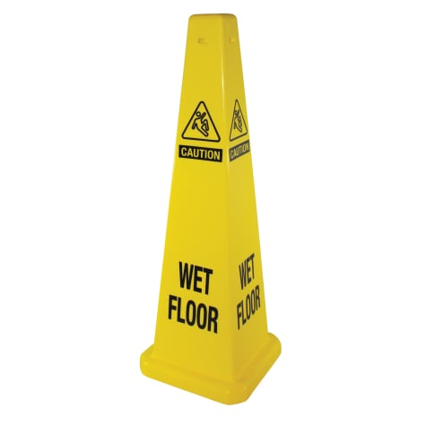 This Hospeco Brands Group Wet Floor Sign has a 36" height and comes in a highly visible yellow color. It is a great way to let customers and employees know of potential hazards.