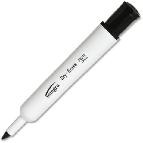 This Integra Dry Erase Marker comes in a black color and has a chisel point. It can be used on erasable marker boards and glass surfaces. This marker has a low odor ink.