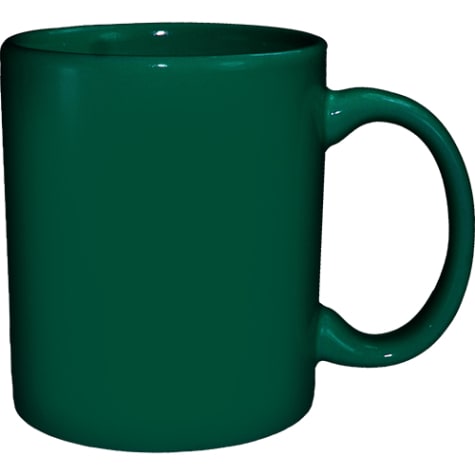 This Cancun! C‐Handle mug holds 11 ounces and features a C‐shaped handle for a sure grip. Made of vitrified stoneware for durability and has a beautiful green finish.