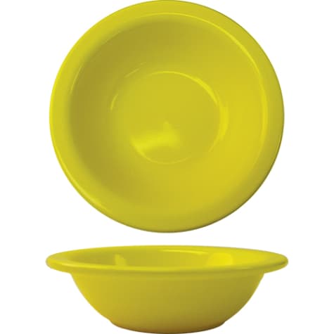 This yellow grapefruit bowl from International Tableware has a 10 ounce capacity and will be sure to brighten any table setting! It is part of the Cancun! Collection and is constructed of vitrified ceramic material for long lasting beauty and durability.