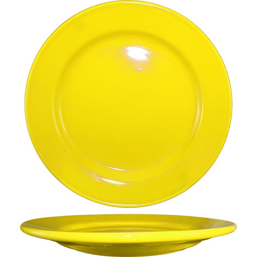 Serve appetizers, desserts or entrees on this yellow rolled edge plate from International Tableware. It is part of the Cancun! Collection and is 9‐3/4"" in diameter. This plate is constructed of vitrified ceramic material for long lasting beauty and durability.