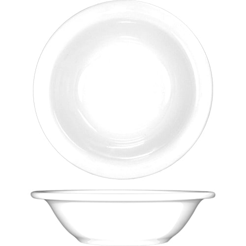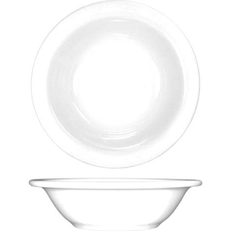 This Dover™ 10 ounce grapefruit bowl features a porcelain construction with a rolled edge. It's microwave and dishwasher safe.