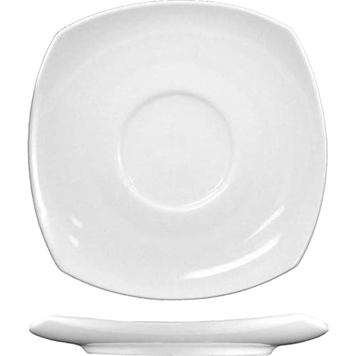 This saucer is designed to work with the Quad! 8 ounce square cup (Model QP‐23).