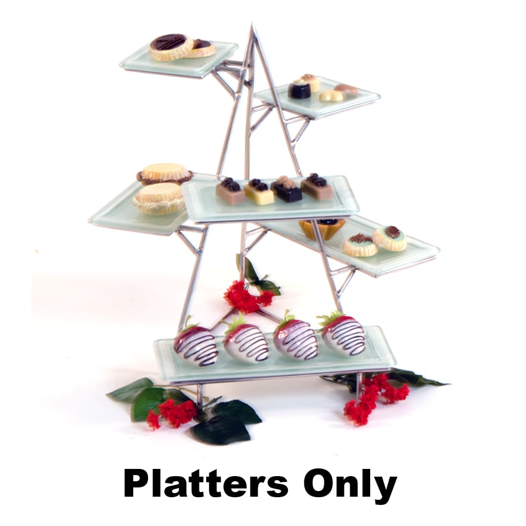 Great at catered events or food tasting events to serve a variety of desserts or appetizers. These platters fit the multi‐level 3D pyramid stand (Not Included).