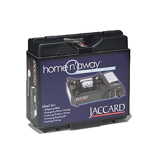 This Home N' Away portable cooking stove from Jaccard® is perfect for tailgating, camping, catering, hunting or power outages. It features heavy gauge steel body construction and the cast aluminum burner will not corrode.