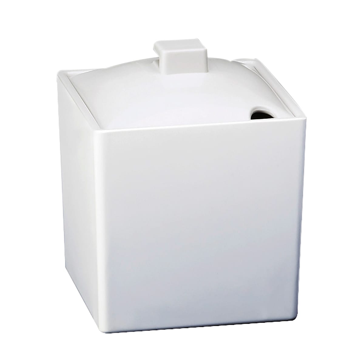 This 12 ounce square jar from Cal‐Mil allows food or condiments to sit in an organized fashion. It is constructed of durable melamine material and includes a notched lid. Put several side by side for flush looking displays.