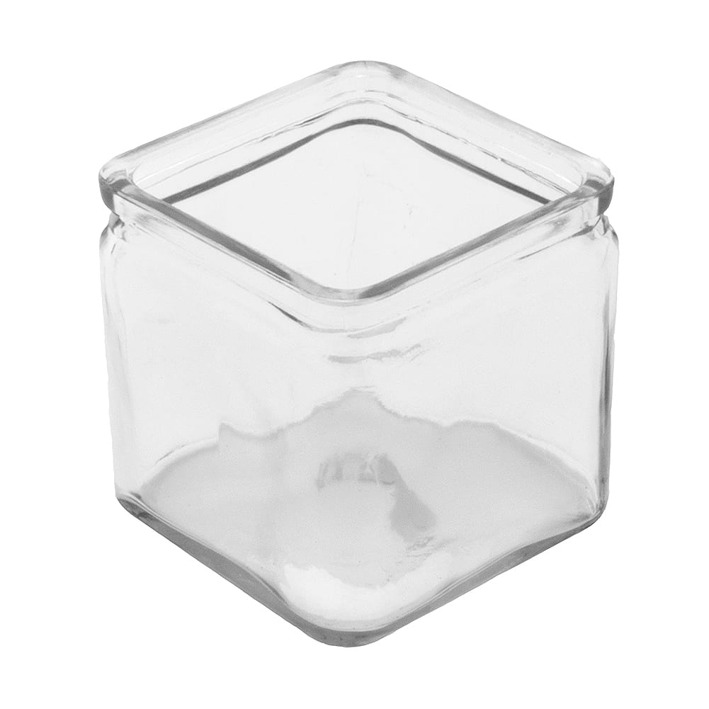 This 4" square glass jar from G.E.T. Enterprises is perfect for displaying condiments or holding cutlery.
