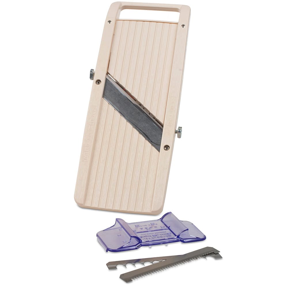 This JB Prince Big Beni Vegetable Slicer is great for creating even, thin slices from vegetables, fruits, cheese and more. It features sharp stainless steel blades, and a heavy ABS plastic body.