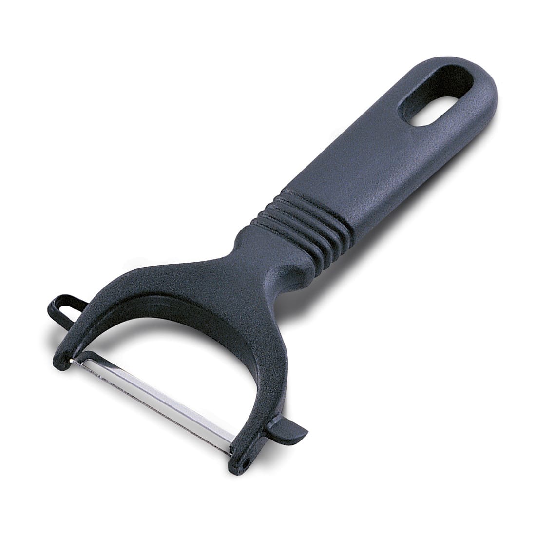 This JB Prince European Style Vegetable Slicer features a swivel, stainless steel blade and a comfortable plastic handle. It has a 5.5 overall length.