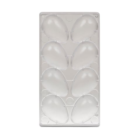 This JB Prince Egg Mold features 8 forms that create half eggs. This mold is designed to work in pairs, to make whole hollow eggs.