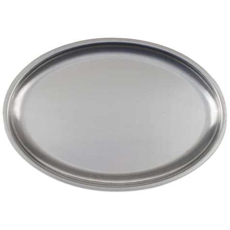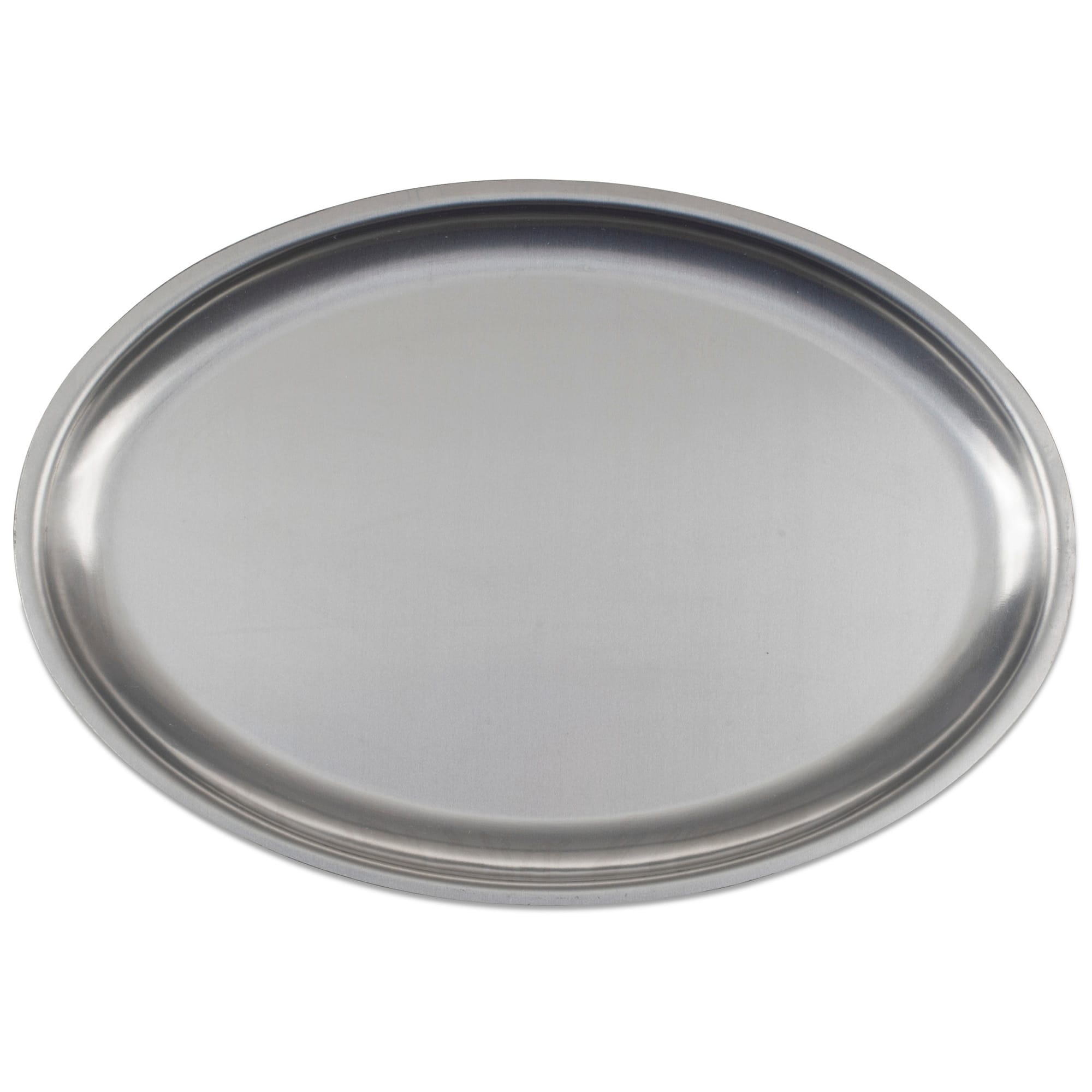 This JB Prince Sizzle Platter comes in an oval shape and is perfect for cooking or heating a variety of foods. It is made from durable 18/8 stainless steel.
