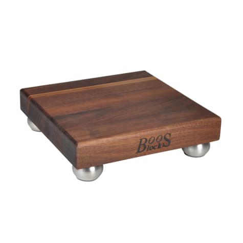 This 9" x 9" cutting board from John Boos features blended walnut edge grain construction and is 1.5" thick.