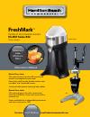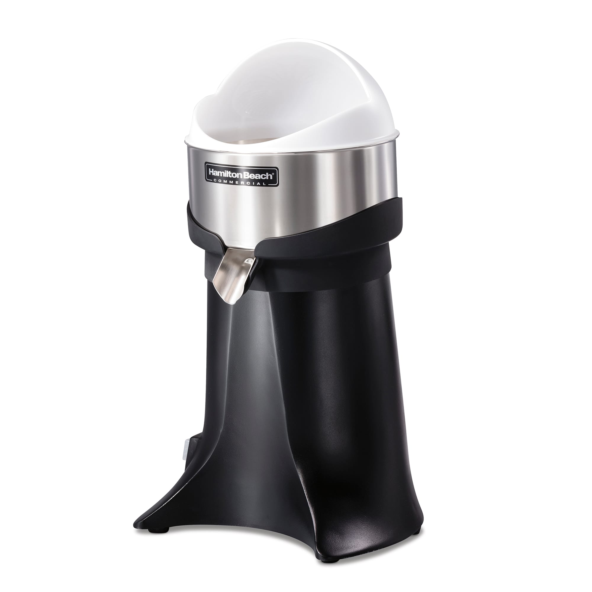 This FreshMark™ electric citrus juicer from Hamilton Beach® features a unique crescent-shaped footprint and is a great option for operators who are juicing more than 32 ounces of juice. This citrus juicer is fast and will save you time with minimum effort and maximum yield.