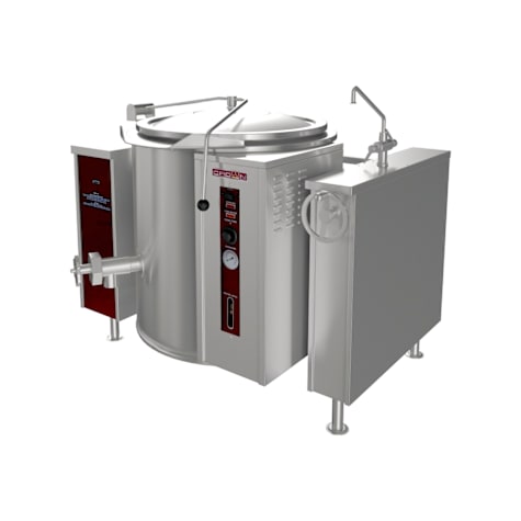 This robust 40-gallon gas steam kettle from Crown Steam Group features a 2/3 steam jacket, which ensures efficient and even heating, powered by a 100,000 BTU burner. The kettle is constructed with a durable 316 stainless steel interior, ideal for high-acid content cooking, and a fully insulated exterior to retain heat and reduce energy costs. Its tilt mechanism allows for easy pouring and complete emptying, while the recessed control panel provides user-friendly operation. With safety features like low water shut-off, pressure relief valve, and electronic ignition, this unit is a reliable and efficient choice for high-volume cooking.