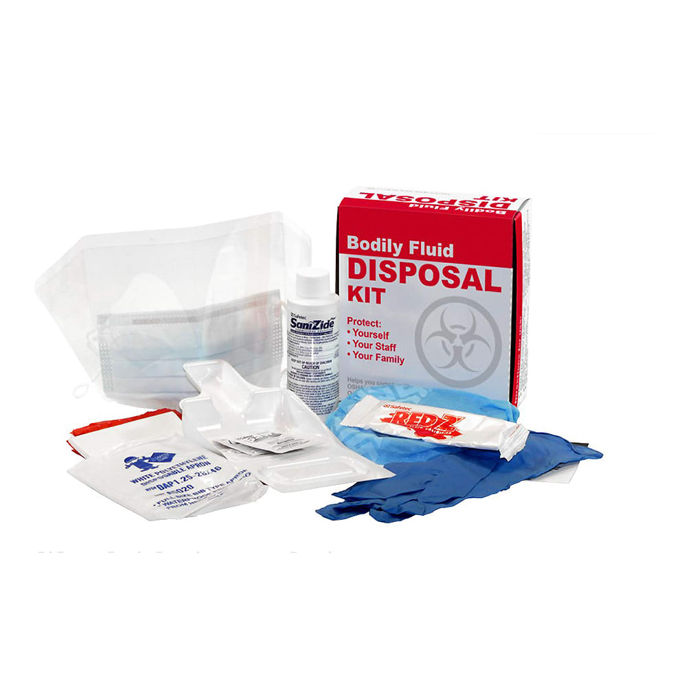 This Bodily Fluid Disposal Kit is the perfect solution for safe and hygienic handling of potentially infectious materials. Designed with convenience and effectiveness in mind, this kit provides everything you need to quickly and securely manage bodily fluids in any setting. This kit includes: (1) 4 ounce bottle sanizide plus, (2) P.A.W.S. antimicrobial wipes, (1) apron, (1) pair of nitrile powder free gloves, (3) C‐fold towels, (1) pair of shoe covers, (2) 24" x 24" red biohazard bags, (2) twist ties, (1) Red‐Z 1 oz. pouch, (1) safety shield, (1) scoop and scraper.