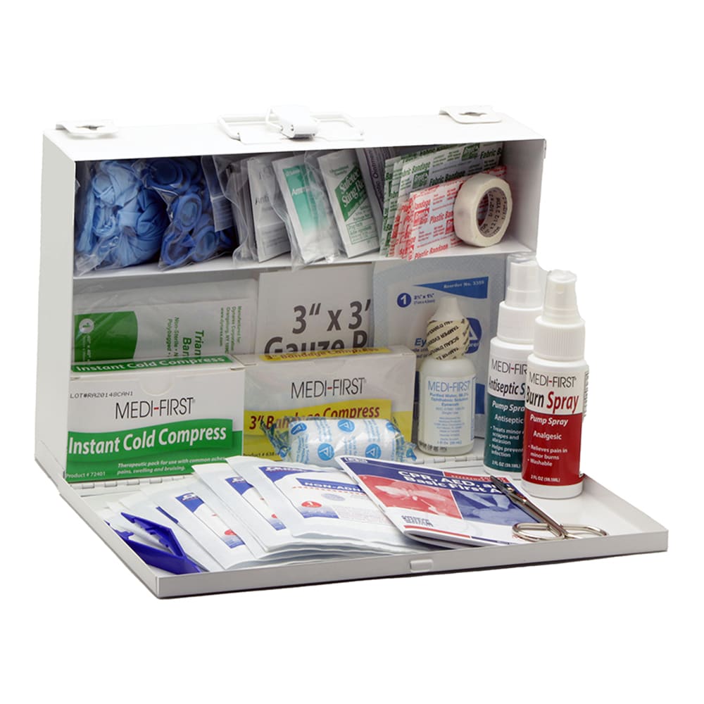 A first aid kit is essential for every home office restaurant and business for emergency treatment of injuries.