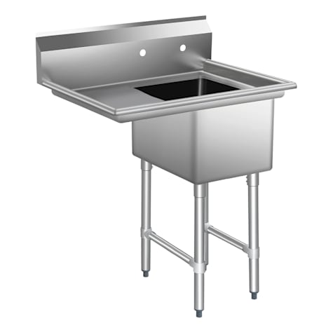 Made for durability and efficiency, this heavy-duty sink features a 16-gauge stainless steel construction for long-lasting performance in commercial kitchens. The spacious 16" x 20" bowl provides ample room for washing, while the 18" left-side drainboard offers convenient space for drying and prep. Ideal for foodservice operations that demand strength and reliability.