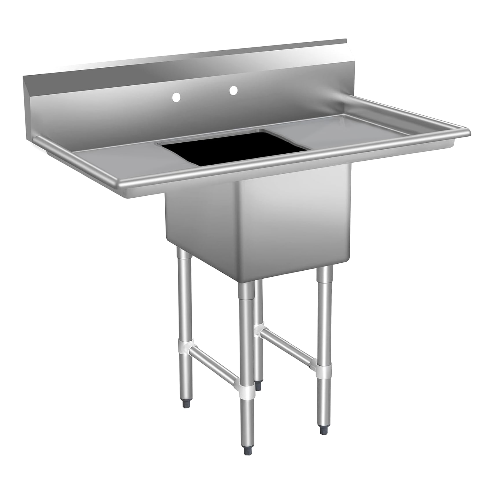 This heavy-duty sink is built for demanding commercial kitchens, featuring a 16-gauge stainless steel construction for superior strength and durability. The 16" x 20" bowl provides ample washing space, while two 18" drainboards offer convenient areas for drying and prep. Perfect for foodservice operations that require efficiency and reliability.