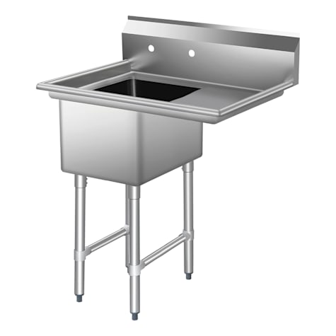 This 16-gauge heavy-duty 1-compartment sink features a spacious 16"x 20" bowl with an 18" right-side drainboard for efficient washing and drying in commercial kitchens. Built for durability and easy cleaning, it provides reliable performance for daily foodservice use while helping maintain an organized and sanitary workspace.