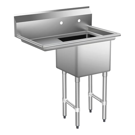 Designed for durability and efficiency, this heavy-duty sink features a 16-gauge stainless steel construction for long-lasting performance in commercial kitchens. The 18" x 18" bowl provides ample space for washing, while the 18" left-side drainboard offers a convenient area for drying and prep. Ideal for foodservice operations that demand strength and reliability.