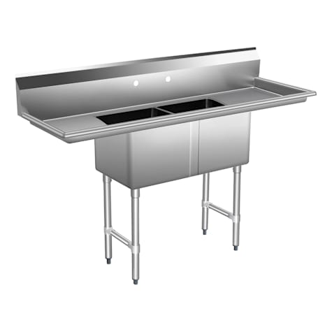 Upgrade your workspace with this durable, commercial-grade sink designed for efficiency and reliability. Featuring two spacious 18" x 18" bowls and dual 18" drainboards, this 16-gauge stainless steel sink is built to handle the toughest tasks. Perfect for foodservice operations, it offers superior strength, easy cleaning, and a professional finish—keeping your kitchen organized and compliant.