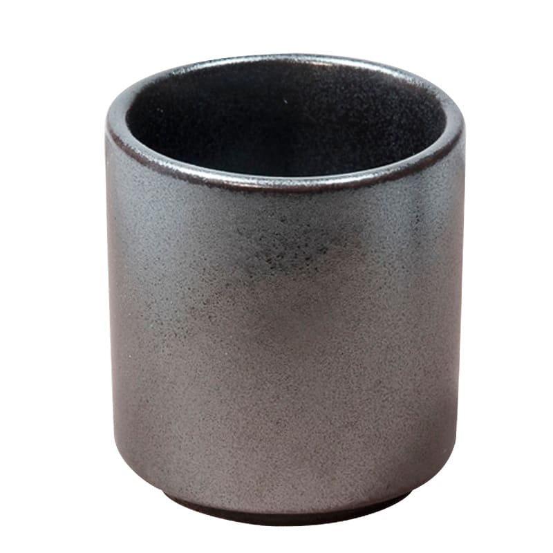 This Korin Japanese Trading Tessa Black Sake Cup has a 1.5 Oz. capacity and a black metallic finish. It can be paired with the Tessa Sake Bottle for a complete setting.