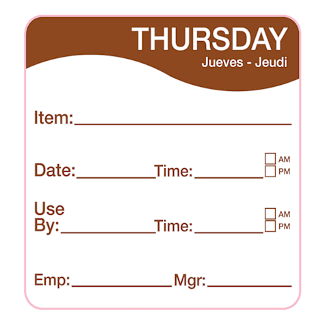Keep your kitchen organized and reduce the risk of cross‐contamination with these Dissolvable Day of the Week Labels from Darling Foodservice. These innovative labels are designed to simplify your workflow by providing a clear and convenient way to track food freshness. Each label is color‐coded and clearly displays the day of the week, ensuring easy identification and rotation of perishable items. What sets these labels apart is their dissolvable nature ‐ no more scraping off stubborn residue or dealing with messy adhesives. Simply apply the label to any surface, and when it's time to clean, the label dissolves completely in water, leaving no trace behind.