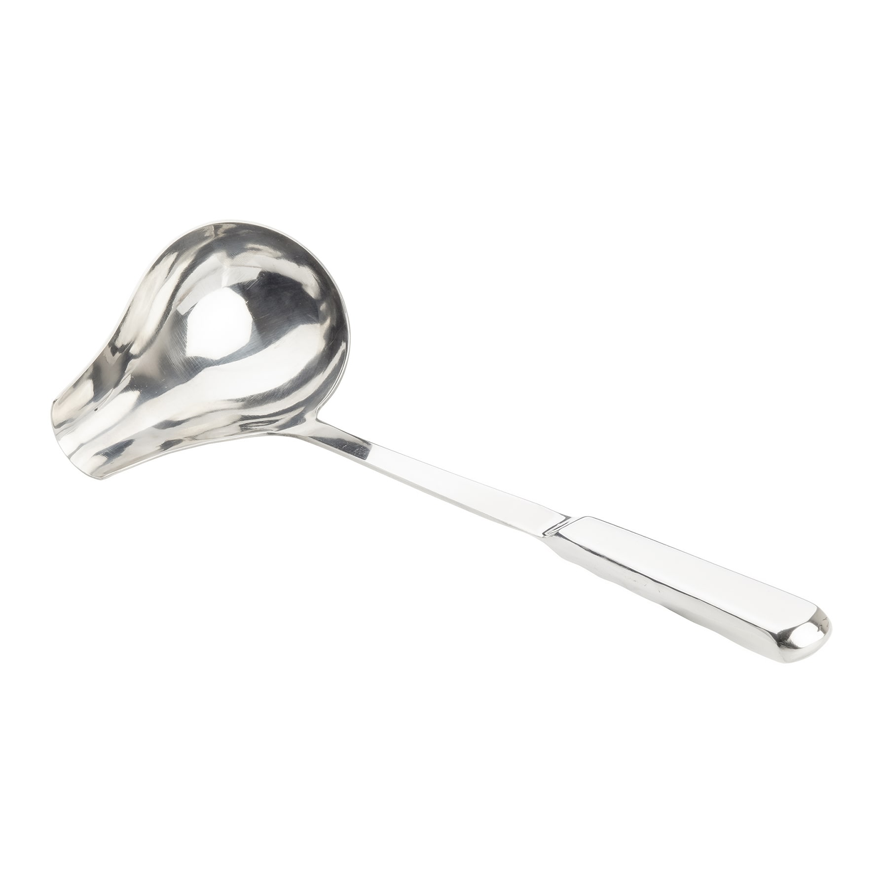 This elegant ladle from the Holden Collection™ features a 2-ounce capacity and a convenient spout for precise pouring. Measuring 12.5 inches in length, it is crafted from 18/0 stainless steel, ensuring durability. The hollow handle provides a comfortable grip, making it ideal for both home and professional kitchens.