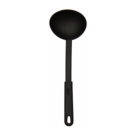 Made of heavy duty nylon, this ladle is heat resistant and ideal for ladling soups, stews and gravies.