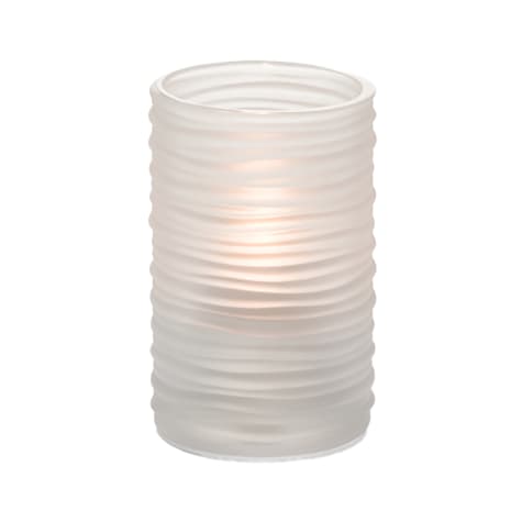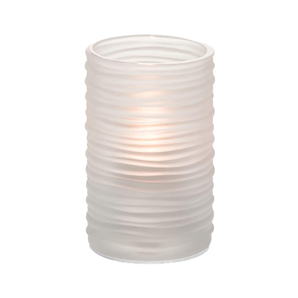 This Hollowick glass candle holder will add a warm glow to your table top. The typhoon cylinder design creates dancing cyclones of light when it reflects of the sculpted ripples.