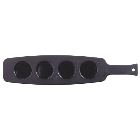 This beer flight paddle from Libbey features durable melamine construction and is perfect for restaurants or bars. This 4-well paddle also features a matte black finish and is 18.75" long.
