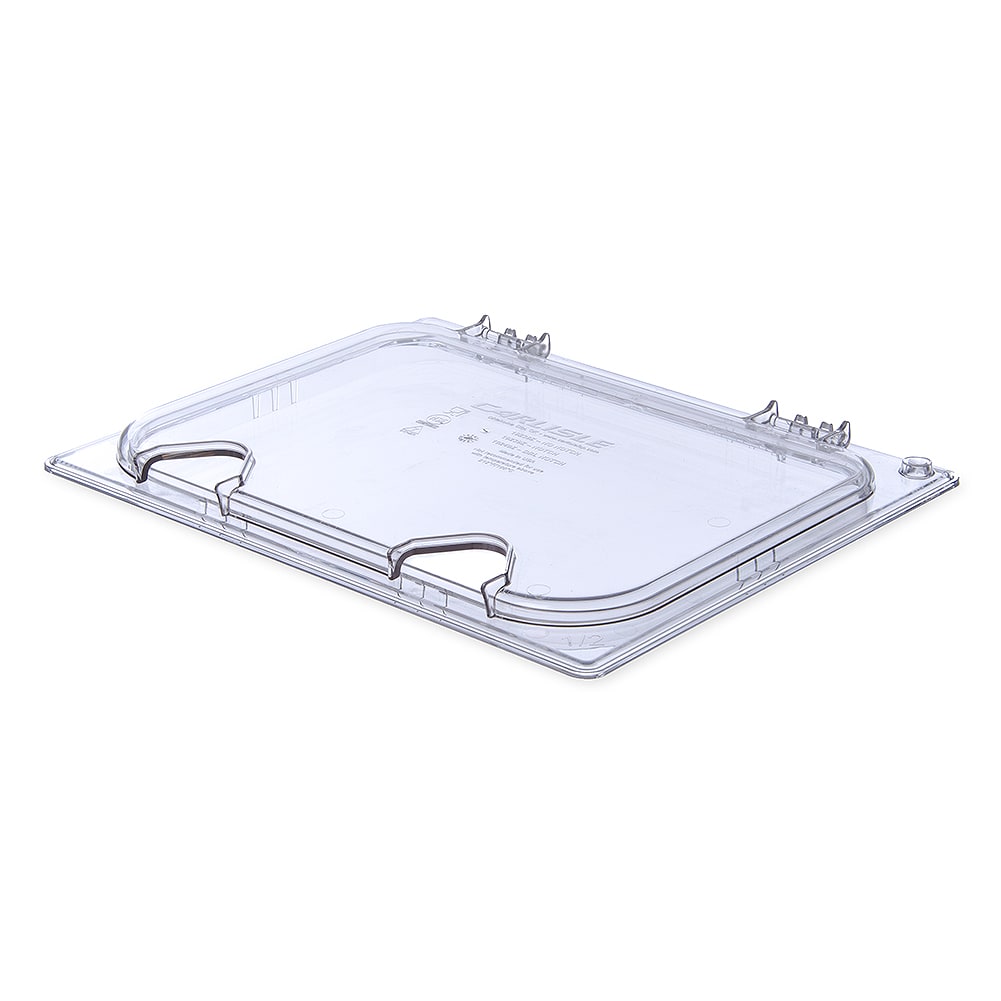 This StorPlus™ EZ Access Hinged Notched Universal Food Pan Lid from Carlisle® features cut-out notches that allow the lid to close with a spoon inside for convenient serving. The sturdy polycarbonate construction resists chipping, staining and cracking.