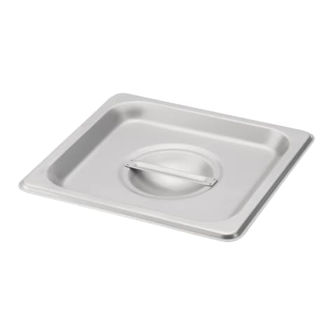 This 1/6 size steam pan cover from Browne Foodservice fits all 1/6 size steam pans and helps prevent seepage or spills during transport.