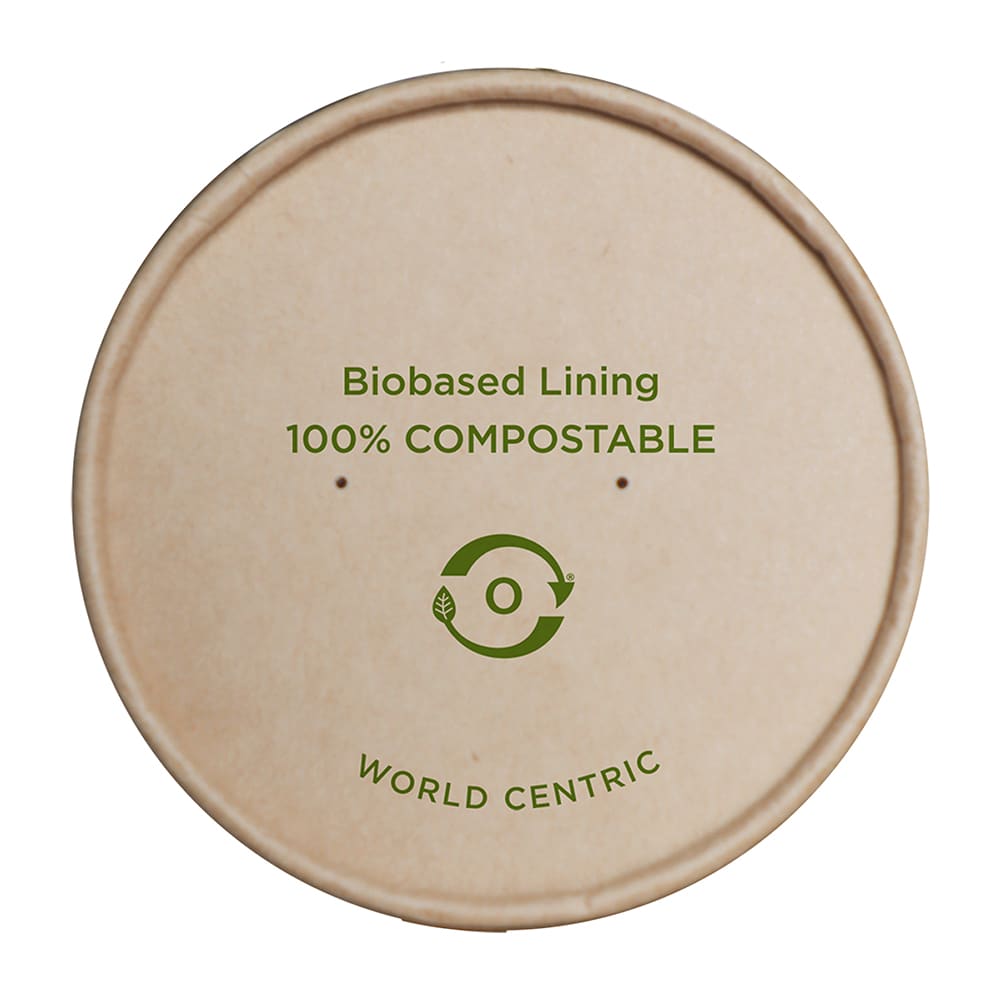 These World Centric® kraft paper lids are for use with 8 ounce paper bowls and are made from unbleached sustainably sourced kraft paper with a bio-lining made from plants. These bowl lids are suitable for hot or cold foods and liquids.