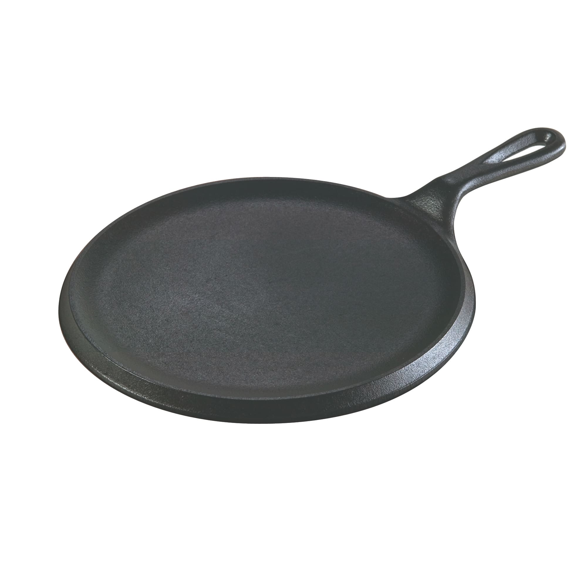 This Lodge® Shallow Round Griddle is made from cast iron and is great for keeping tortillas warm, serving baked cheese, and more.
