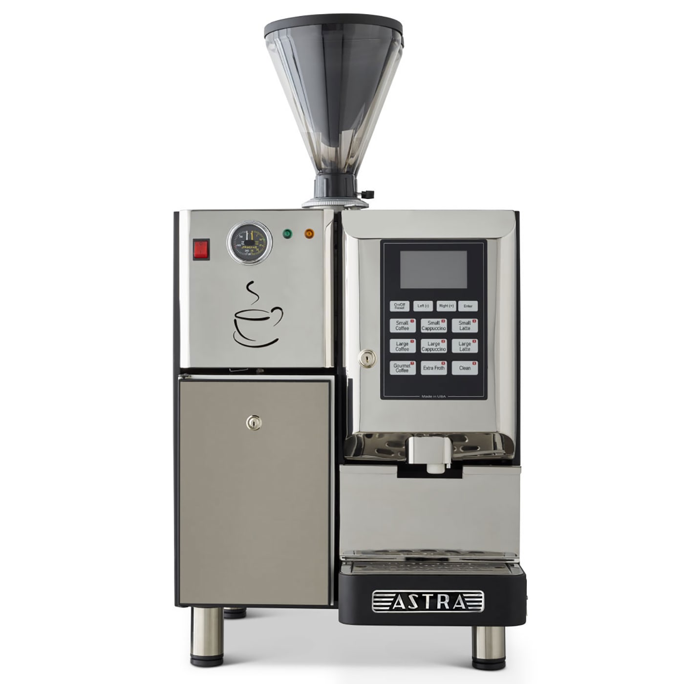 Anyone can produce barista-made quality with Astra's fully automated, commercial-grade SM-111-1 Super Automatic Espresso Machine which can make up to 14 drink selections with the touch of a button. The SM-111-1 features an integrated refrigerator for dairy and automatically cleans and rinses components every 15 minutes and after every drink.