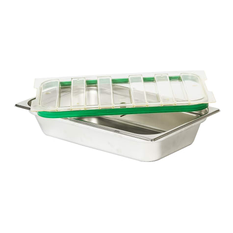 The GreenVAC system, an eco-conscious and reusable vacuum packaging solution, is engineered to withstand an exceptional 99.8% vacuum pressure without collapsing, setting an industry standard. Its sturdy construction is tailored to accommodate delicate items like salads and berries, allowing them to be vacuum-sealed and conveniently stored without compromising their integrity. By extending the shelf life of products, streamlining food preparation, and eliminating the need for transferring food between containers based on portions, GreenVAC optimizes storage and is an excellent fit for catering operations. This system is versatile, suitable for storage, production, and the transportation of shock-cooled food within a cold-chain logistics framework. Customers can reinvigorate their meal directly in the same container, making it an efficient choice for food delivery services.