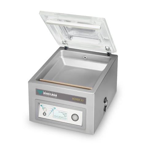 This Henkelman Boxer 35 CombiVac is a versatile chamber vacuum packaging machine designed for professional use. Featuring a powerful vacuum pump, it ensures efficient and reliable vacuum sealing for a variety of products. The machine includes a 14-inch sealing bar and a durable stainless steel exterior, making it suitable for demanding environments. With an intuitive control interface, it offers a 10 program memory that can be set to suit specific products. Ideal for extending the shelf life of food and optimizing storage, the Boxer 35 CombiVac is perfect for restaurants, catering services, and food processing facilities.