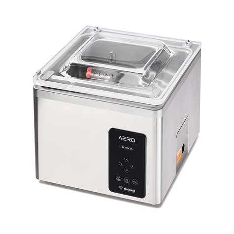 This durable AERO 42 countertop vacuum sealer from Henkelman features a modern and sleek design. Experience effortless control through an intuitive interface featuring three adjustable setting programs. This unit also features precise vacuum settings with sensor pressure control. Standard soft-air, liquid control optional.