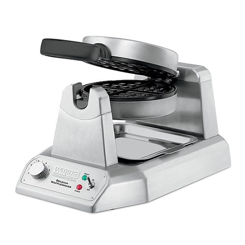 This Single Belgian Waffle Maker from Waring® Commercial is designed with a rotary feature to ensure even results. It bakes up to 25 Belgian waffles per hour and the triple-coated nonstick plates easily release flawlessly formed Belgian waffles - and because the plates are user serviceable, they are simple to replace if scratched.