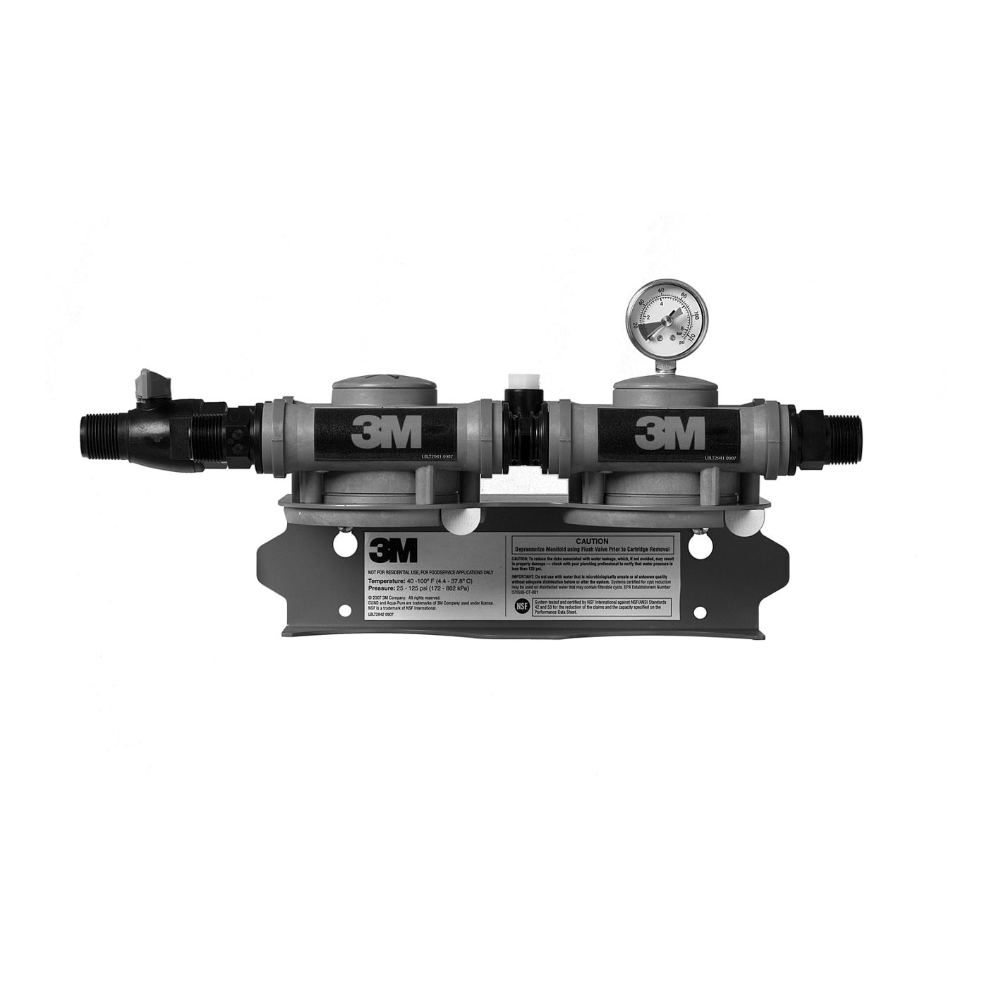 This Dual Port Twin Manifold is tailored for high-demand environments needing versatile water filtration. With two heads and dual outlet ports, it supports simultaneous use of multiple filtration cartridges, including scale inhibition options.