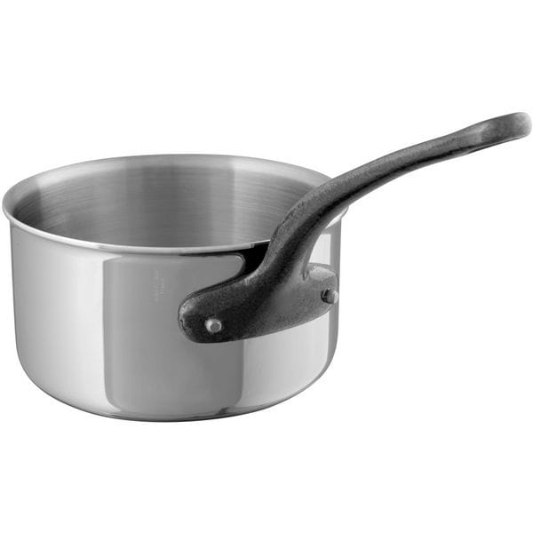 This 1.9 quart sauce pan from Mauviel is part of the M'Cook Collection and features 5 ply construction and a cast iron handle. This pan works on all cooking surfaces, including induction. The 2.6 mm thickness allows for even heat distribution.